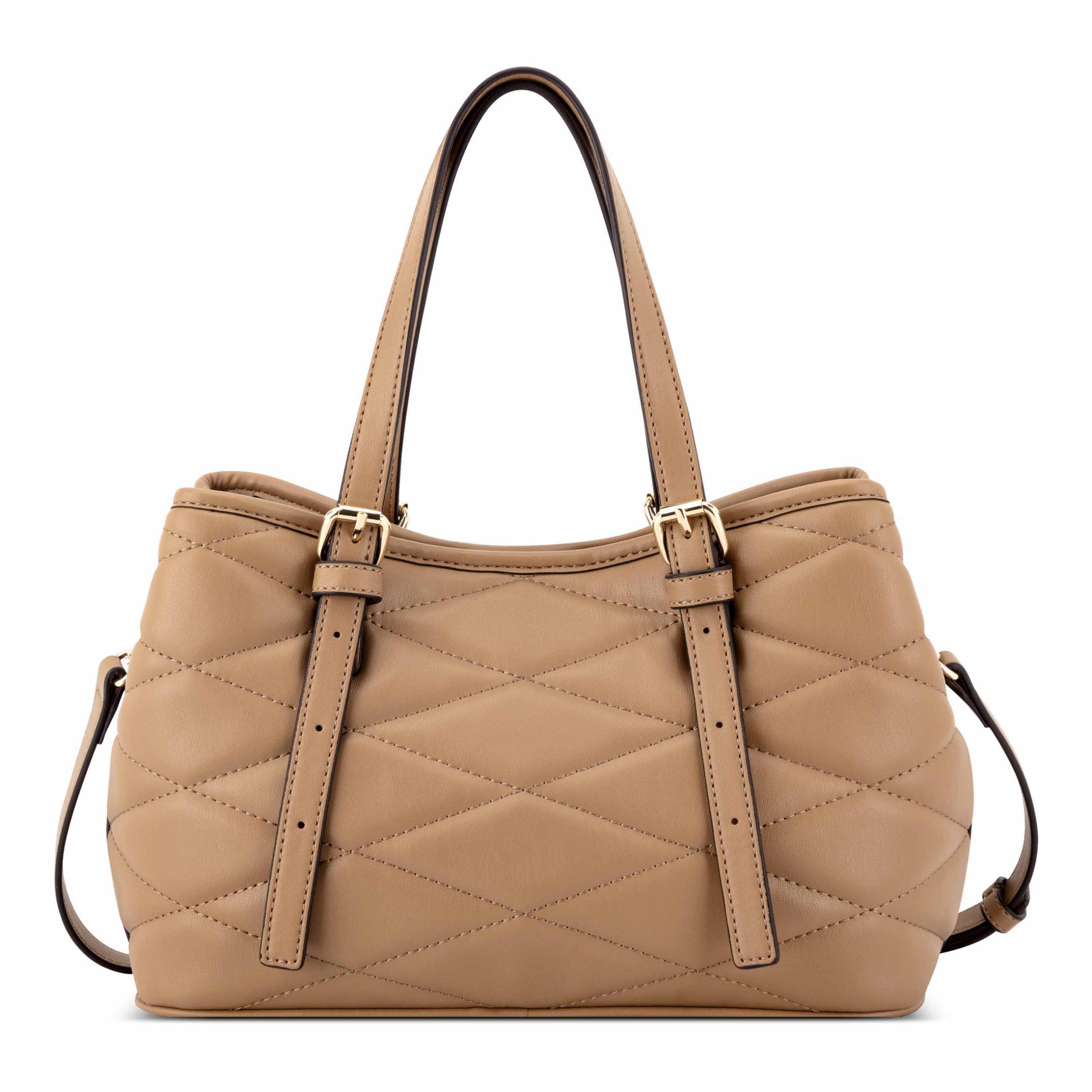 Nine West designer Anders satchel with internal slip and zipper pocket organization and external hardware details and branding. Converts to crossbody for hands free ease.
