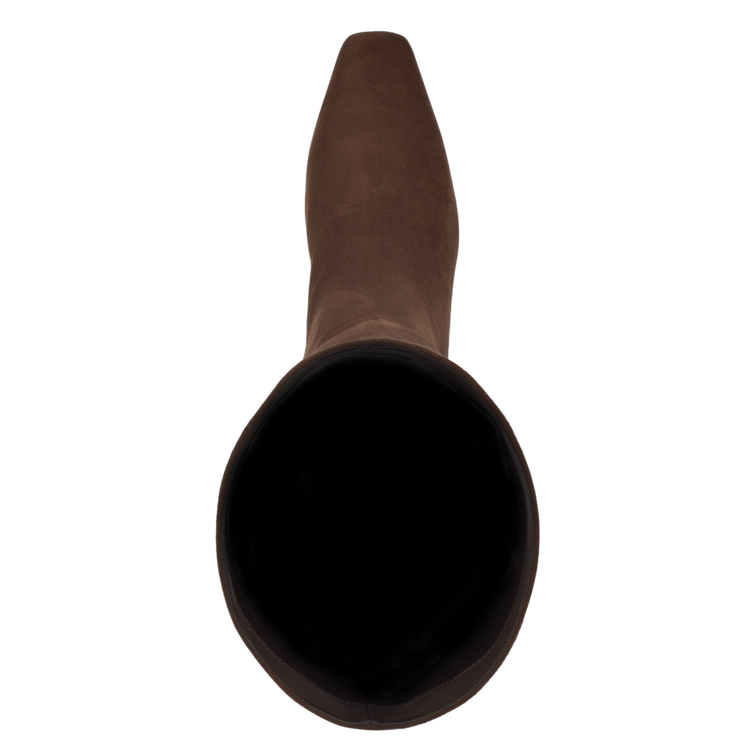 The Cacie is a to-the-knee boot with a squared-off toe and a covered block heel that keeps you grounded through every plan on the calendar. Clean lines run from the structured square toe up through a tall. sculpted shaft with a subtle curved topline. giving you that polished. pulled-together silhouette without even trying.