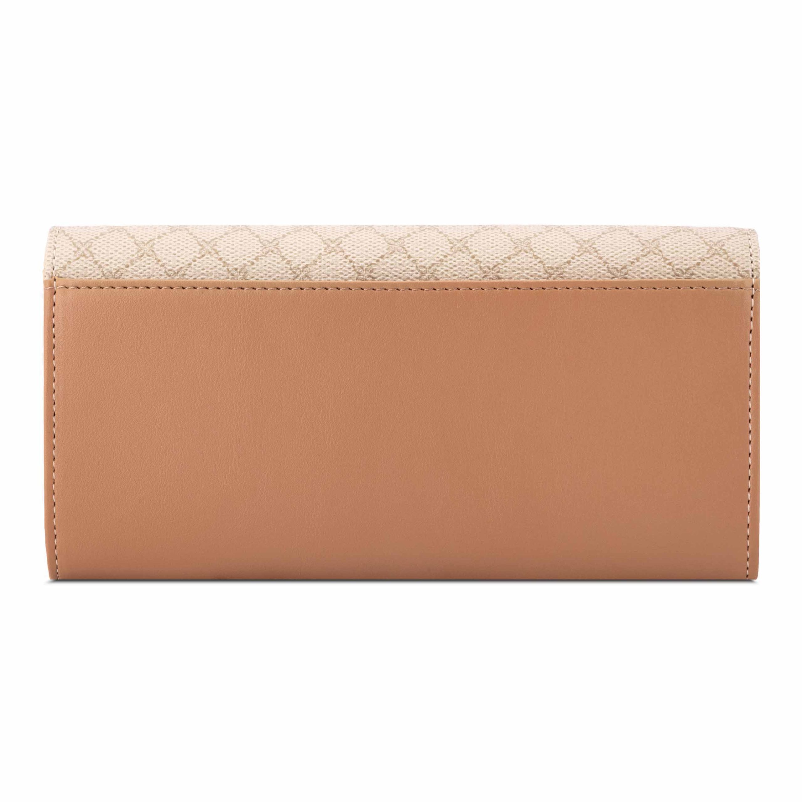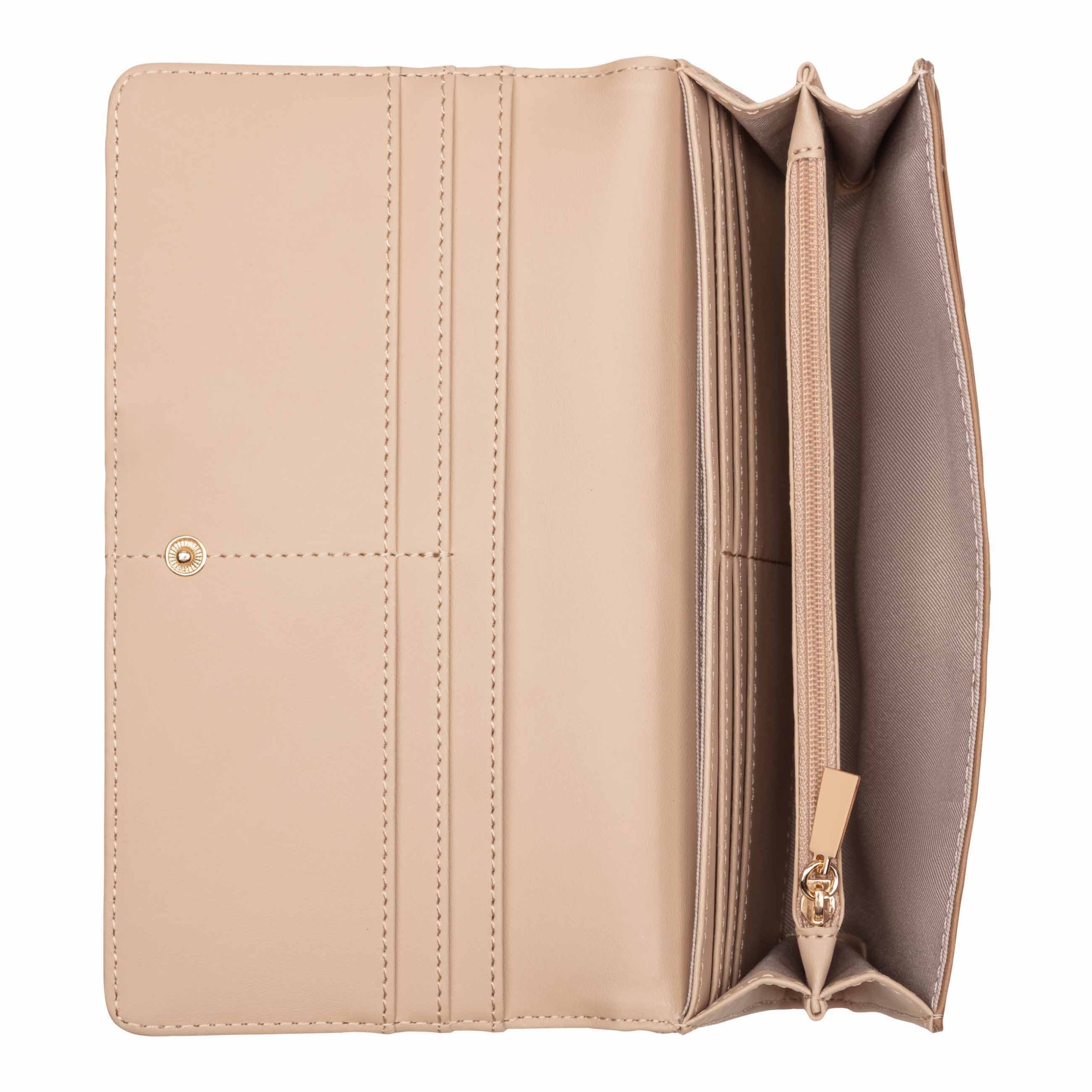 Nine West designer phone wallet clutch with internal slip and zipper pocket organization and external hardware details and branding. Internal phone pocket for large phone.