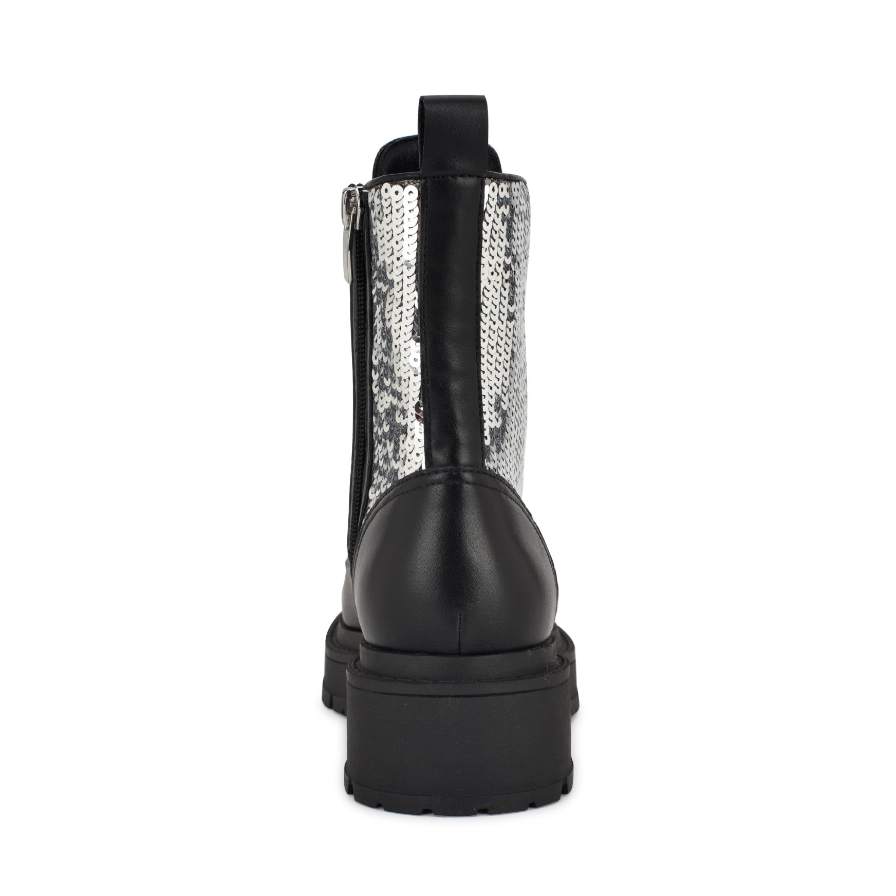 Sequin panels and a lug sole walk into a bar. and the Hediy is what happens next. This lace-up combat bootie brings the sparkle without losing its edge. featuring a round toe. rubber block heel. and a mid-height shaft covered in tonal sequins that catch light from every angle. Statement-making and grounded all at once. it’s the boot that does the most while keeping you on your feet all night.