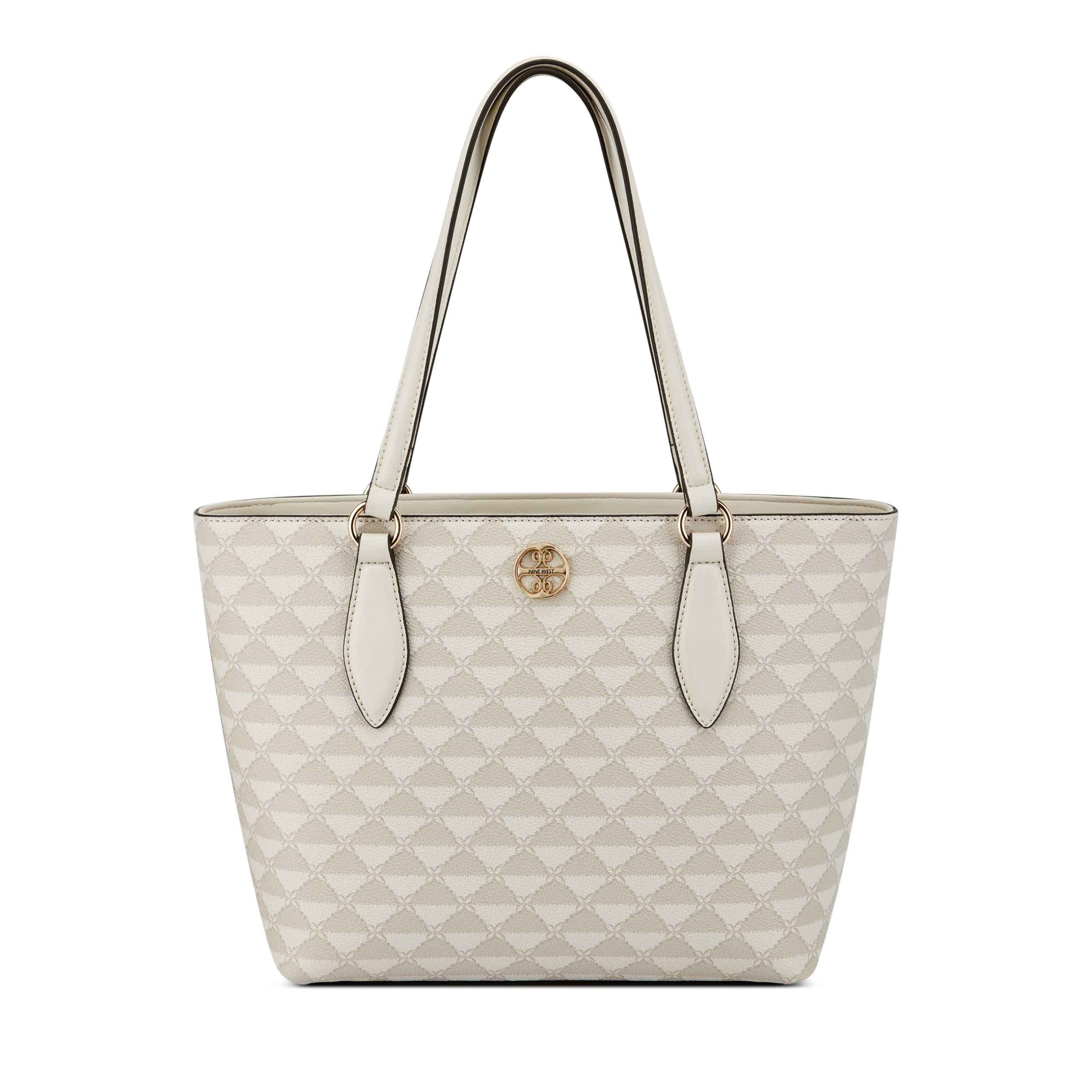 Nine West designer Kyelle small tote with vintage hardware details and exterior branding. Designed with triple compartment function.