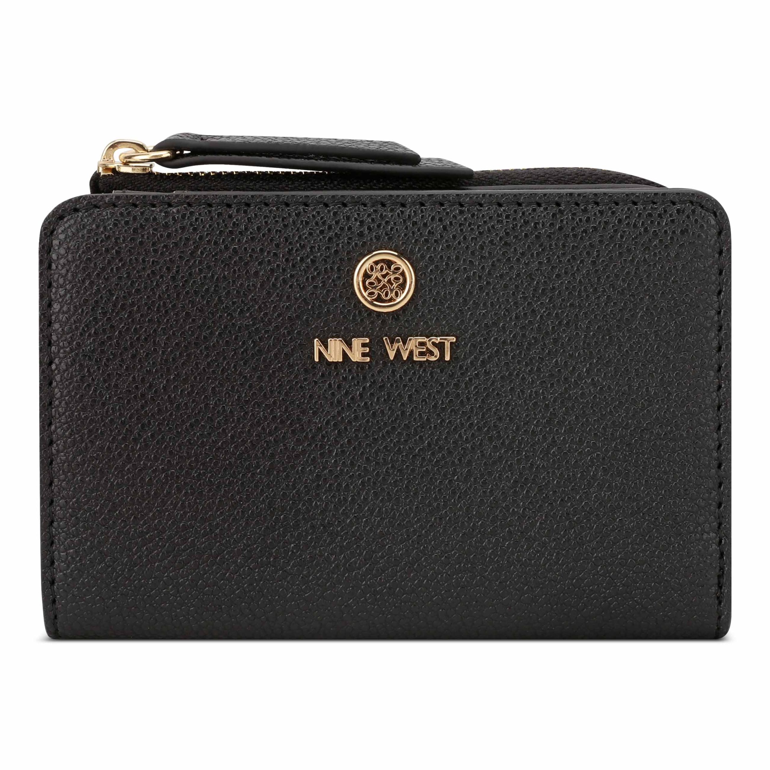 Nine West designer card case styled with durable material with branded hardware detail. Internal slip pockets for organization and exterior zipper pocket with full zipper closure.