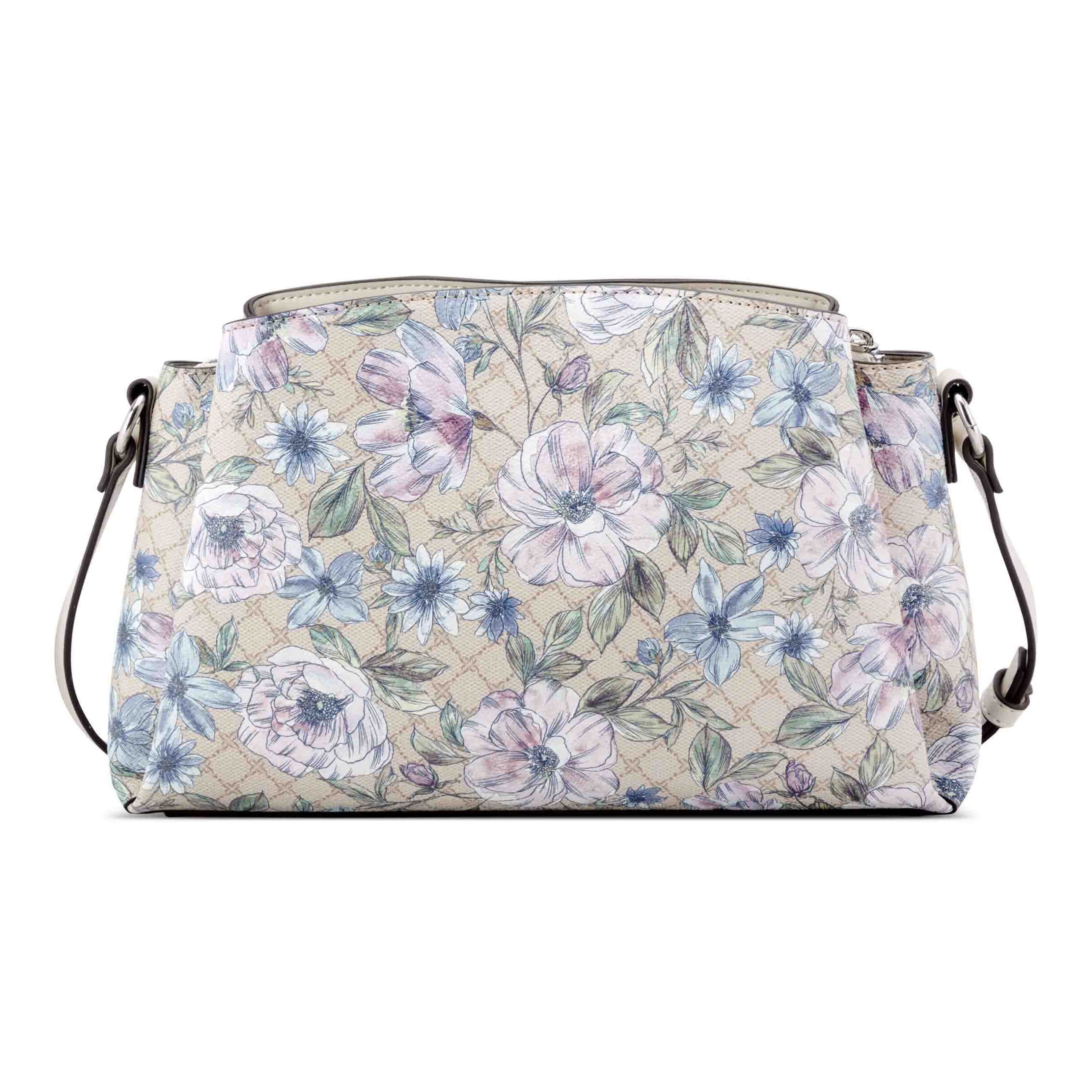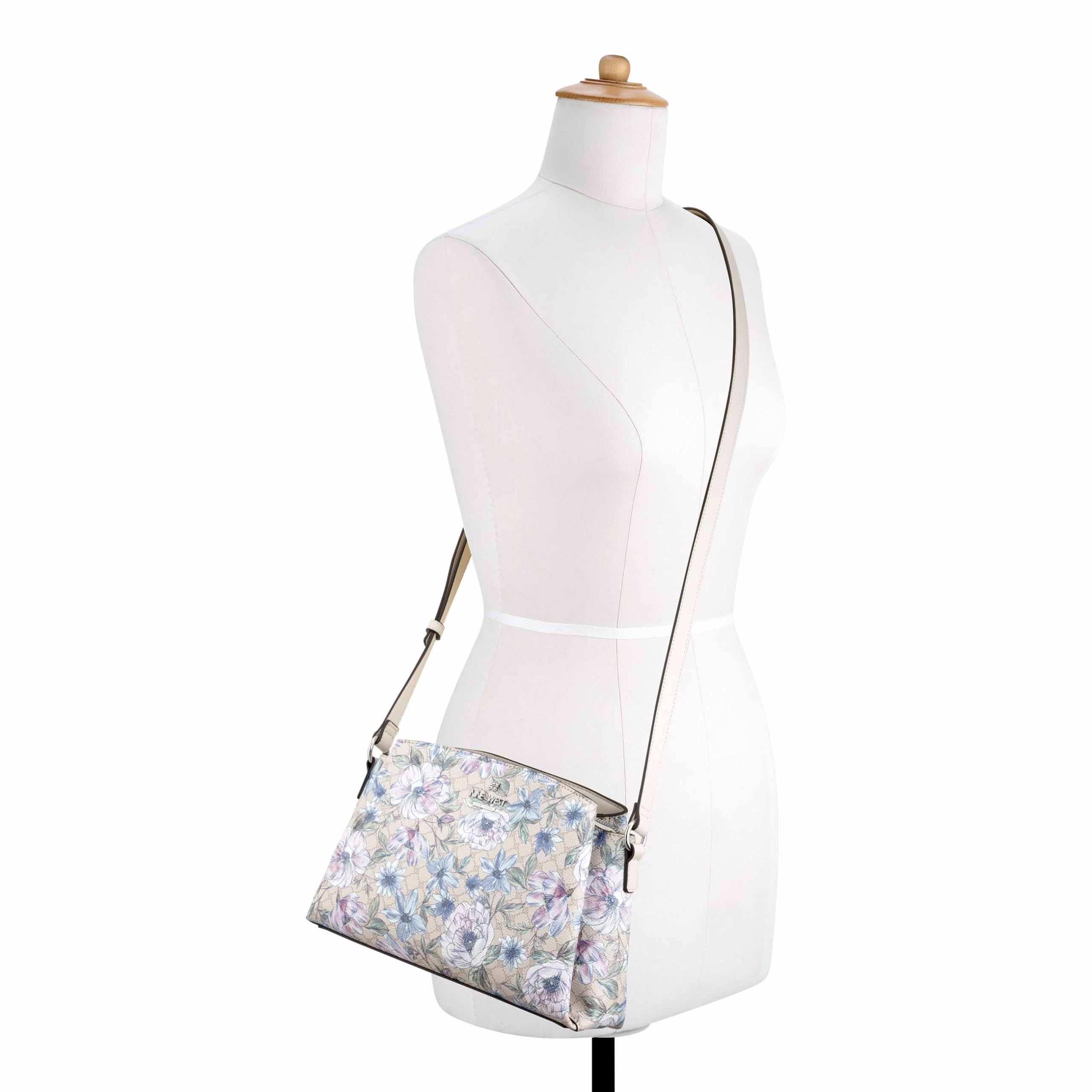 Nine West designer Luela triple compartment crossbody with internal slip and zipper pocket organization and external hardware details and branding. Adjustable crossbody strap for hands free ease.