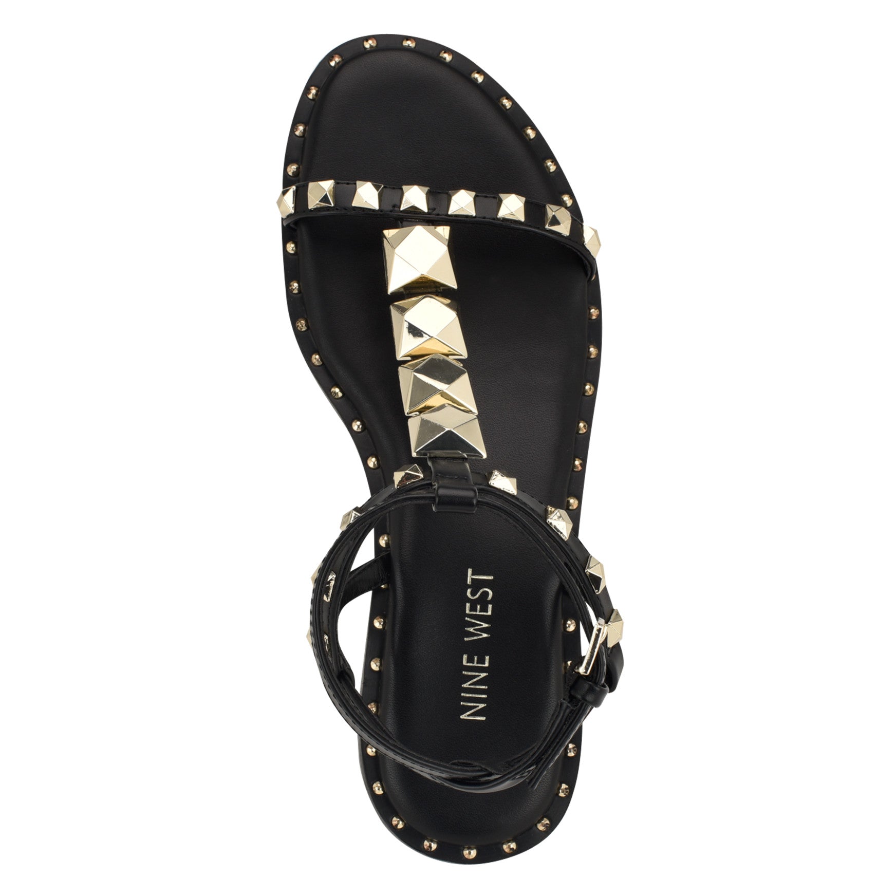 Studded from toe to ankle and around the entire sole. the Marcila flat sandal goes all in on hardware. Oversized geometric studs line the T-strap cage while smaller round studs trace the footbed edge. giving you twice the texture and twice the attitude with a buckled ankle strap that keeps everything locked in. Materials vary by color.