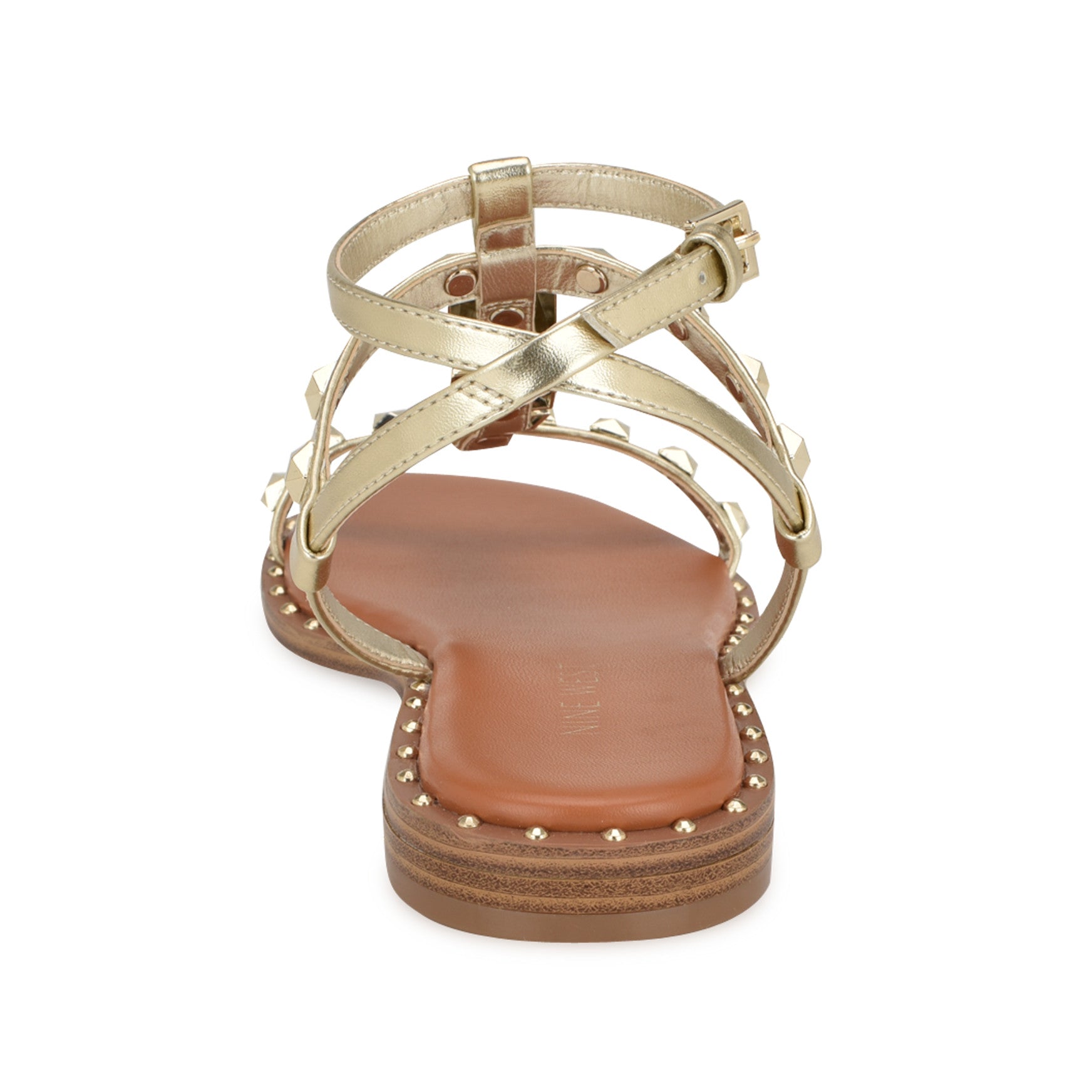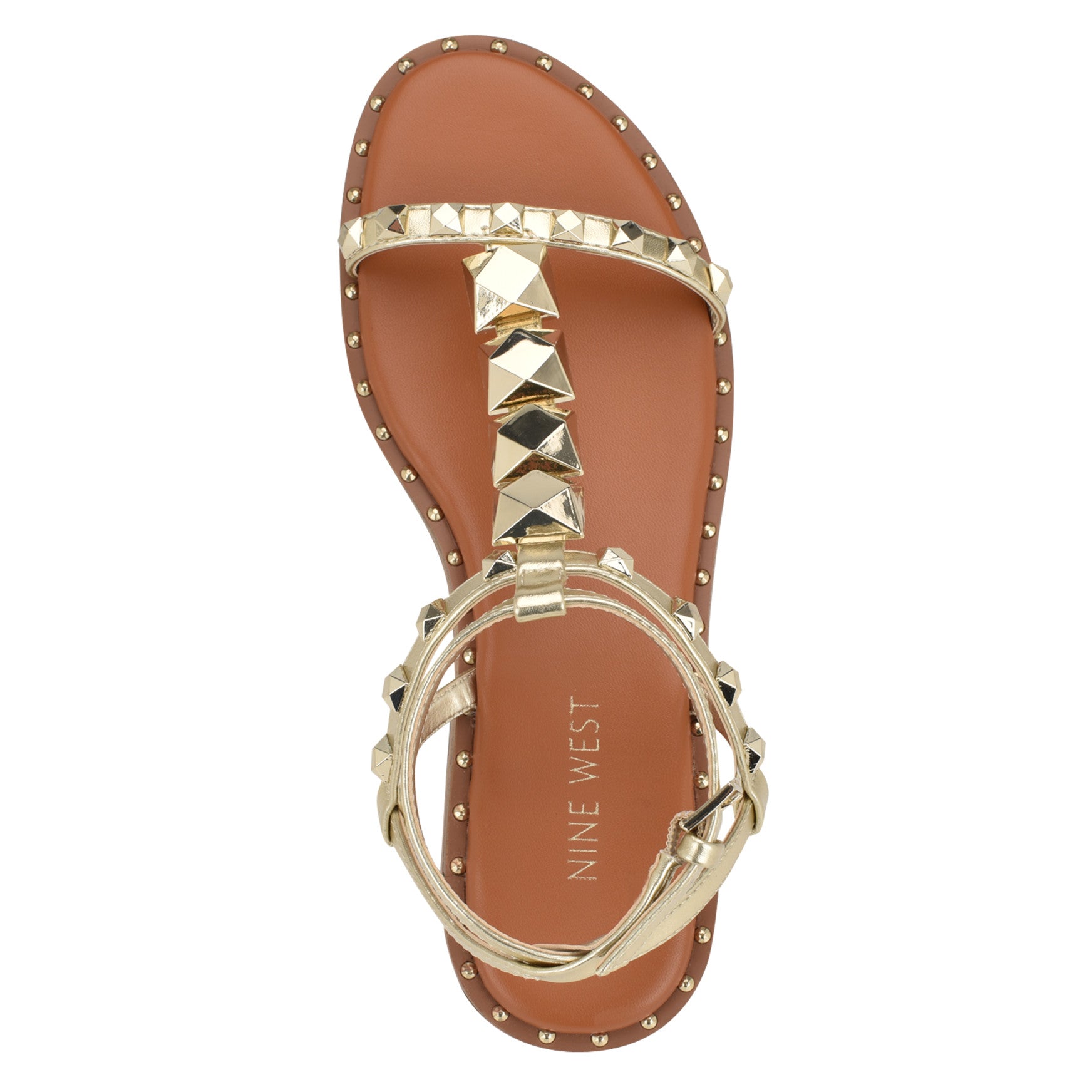 Studded from toe to ankle and around the entire sole. the Marcila flat sandal goes all in on hardware. Oversized geometric studs line the T-strap cage while smaller round studs trace the footbed edge. giving you twice the texture and twice the attitude with a buckled ankle strap that keeps everything locked in. Materials vary by color.