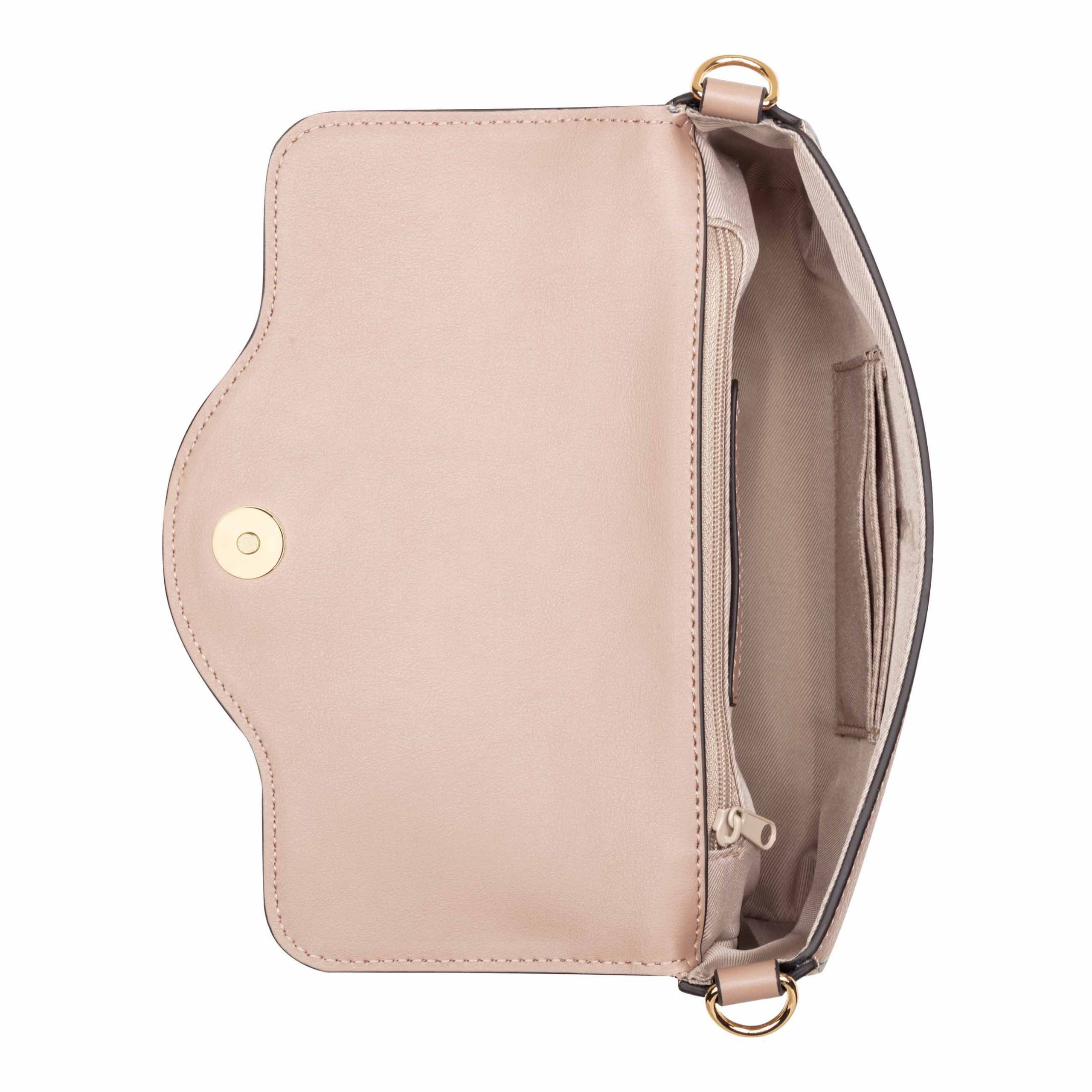 Nine West designer Nalini small flap crossbody with card case with internal slip and zipper pocket organization and external hardware details and branding