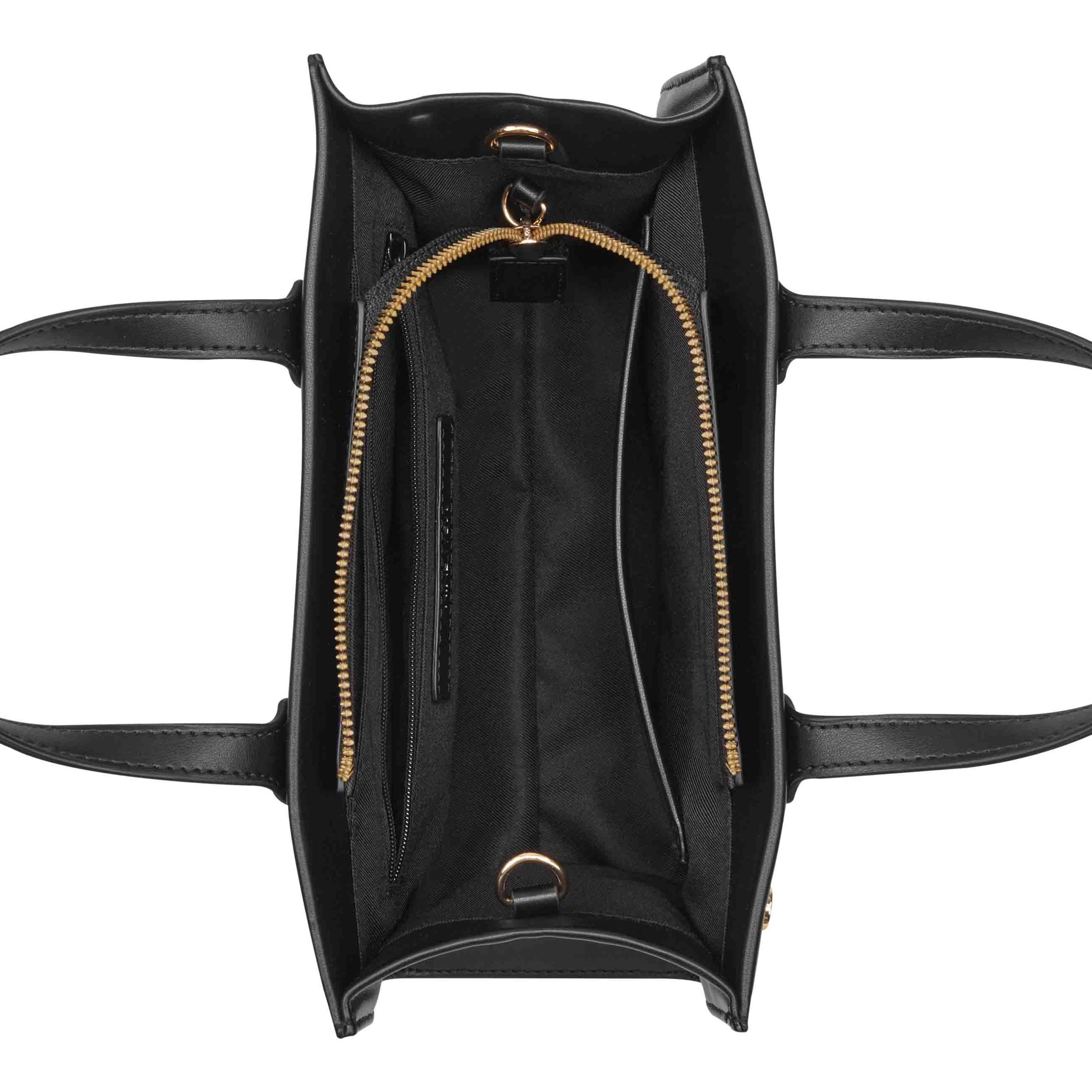 Nine West designer Pauline mini tote crossbody with internal slip and zipper pocket organization and external hardware details and branding. Designed with web strap fashion strap.