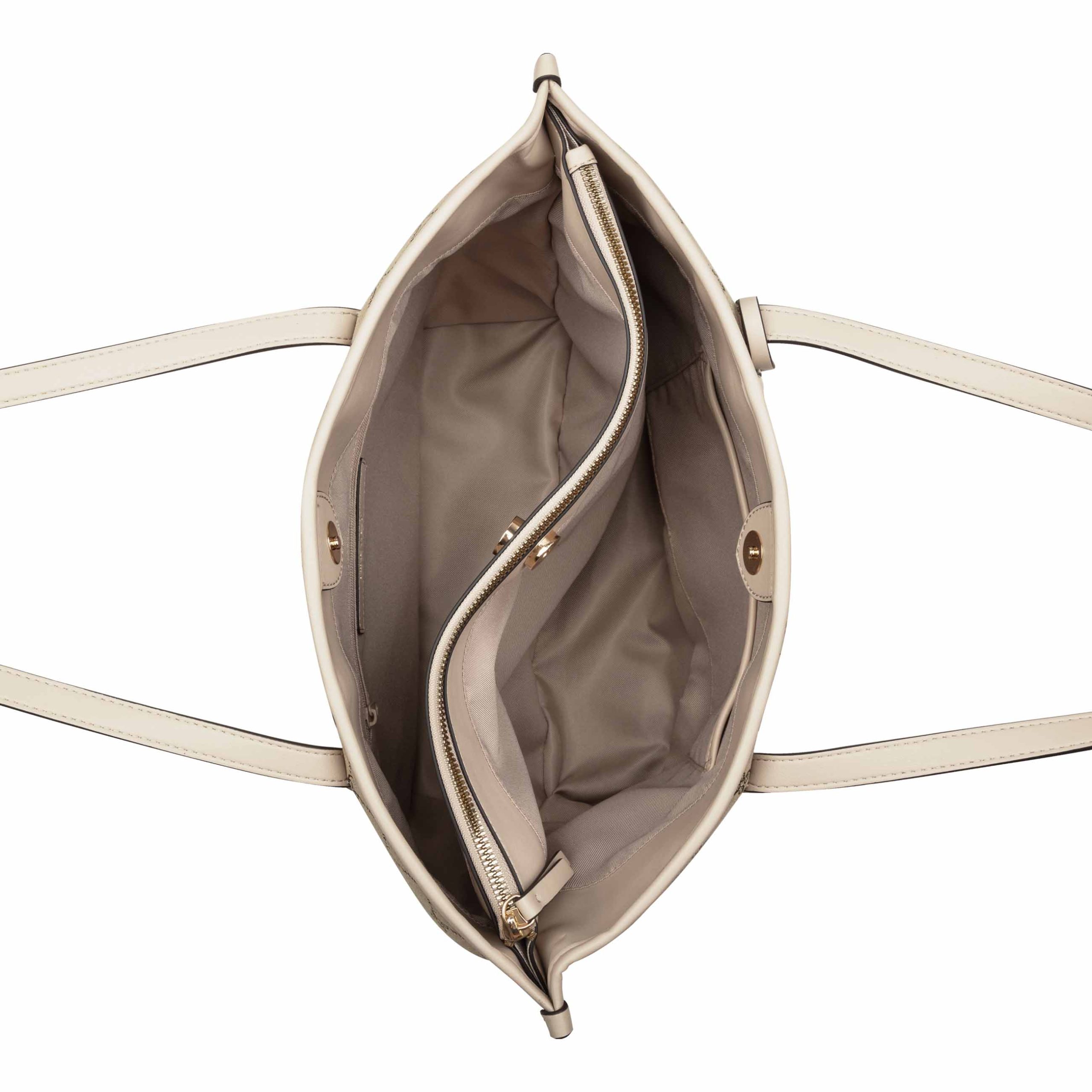 Nine West designer Quincie tote bag. Perfect for everyday carryall with design accents of gusset. contrast stitch and seam details. Internal organization an updated modern enamel hardware.