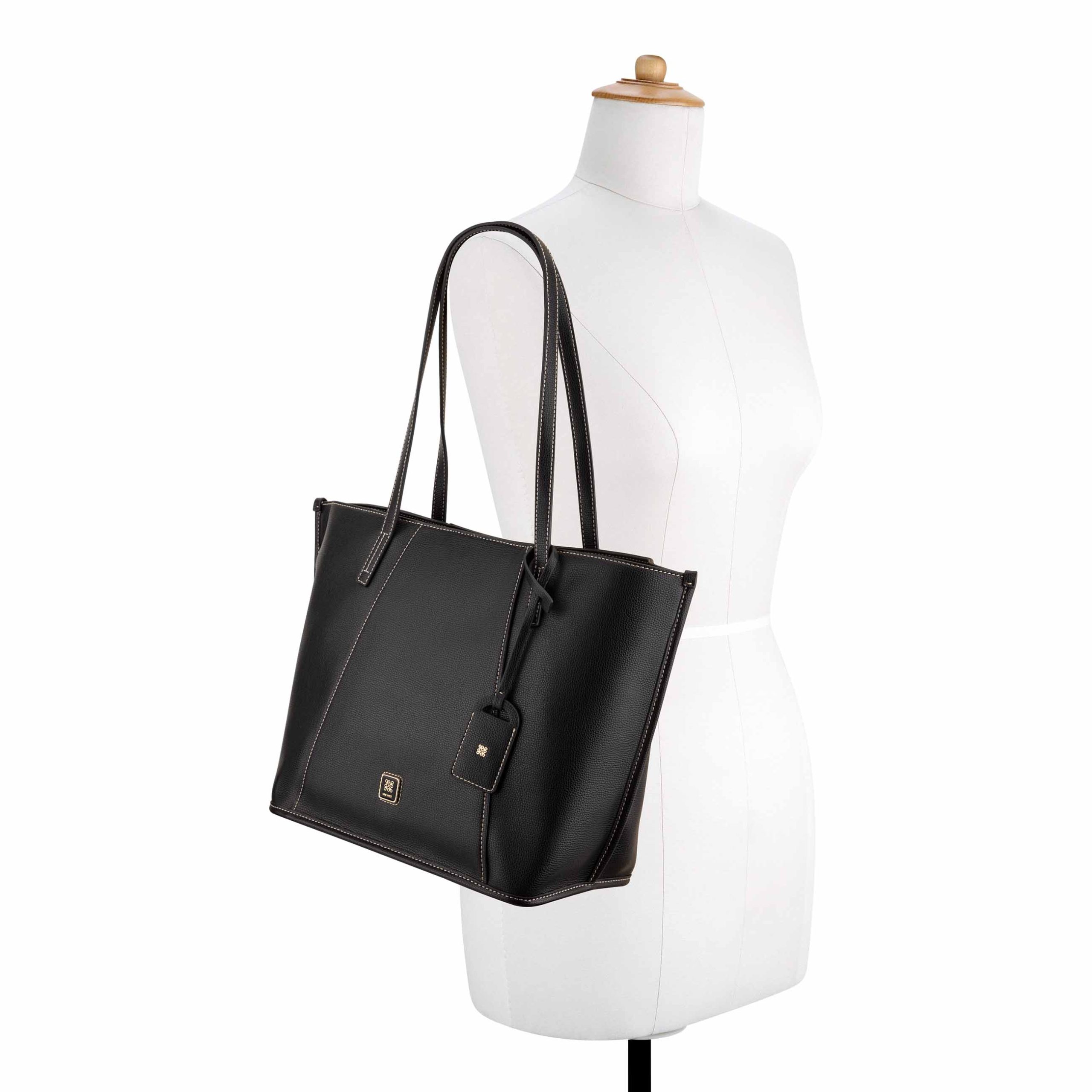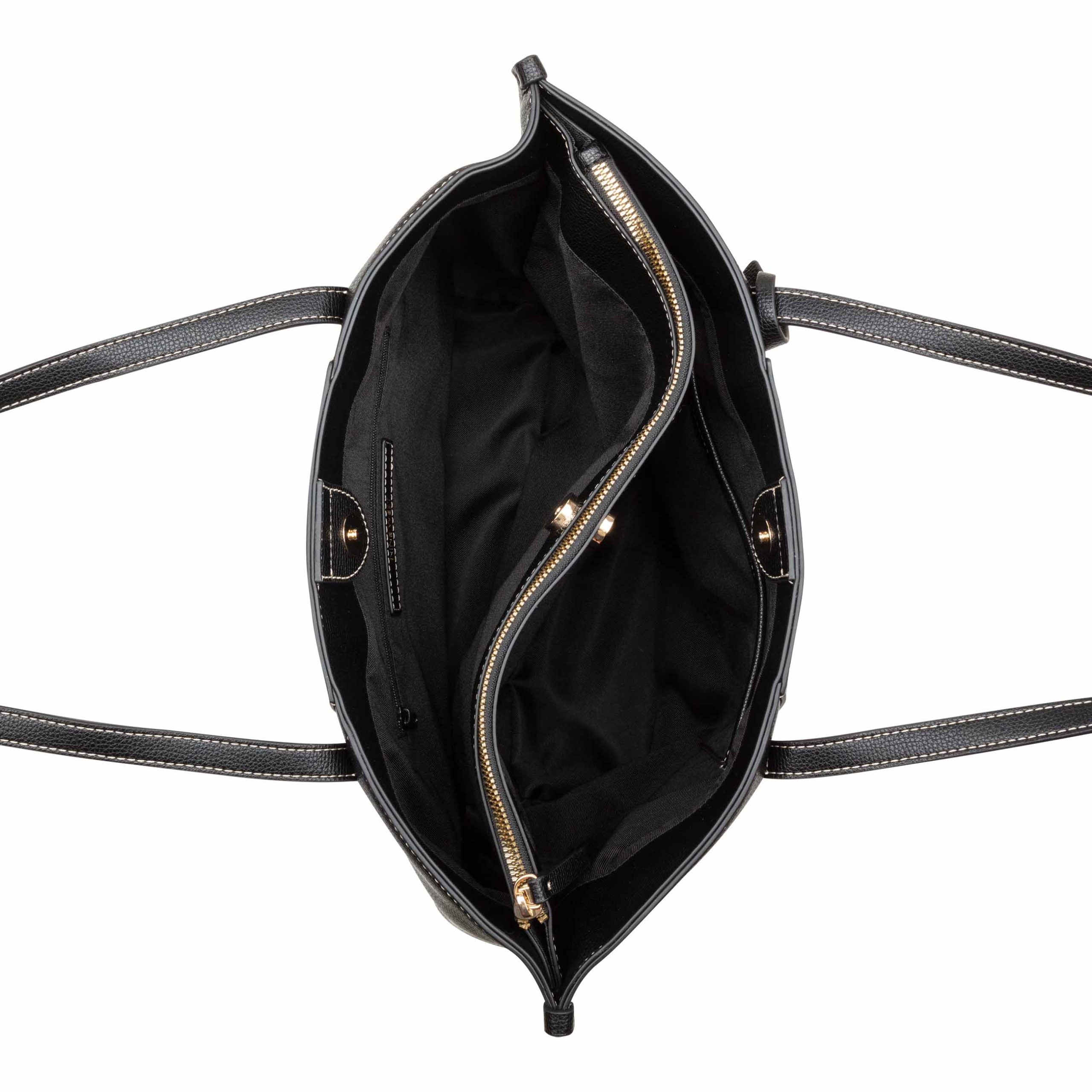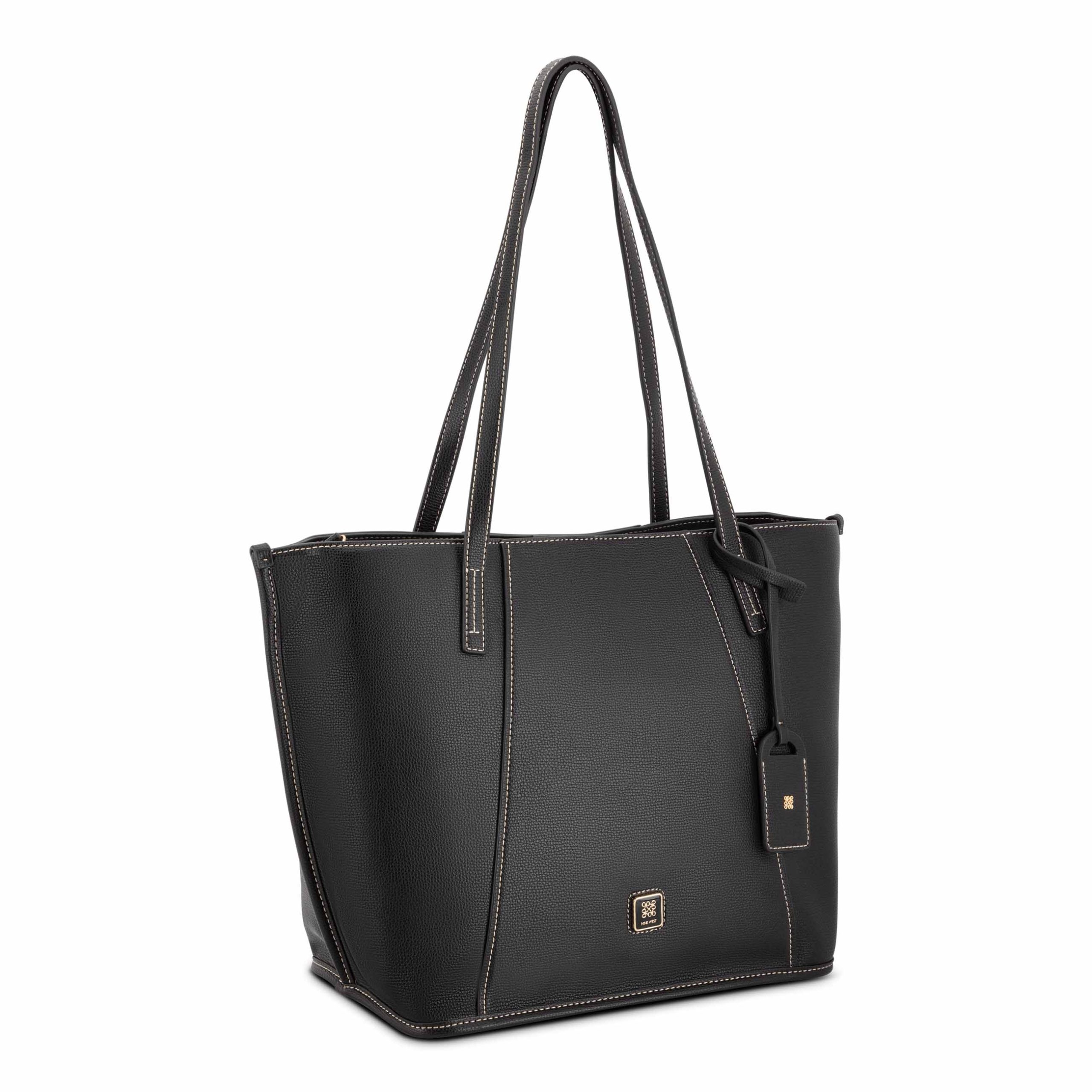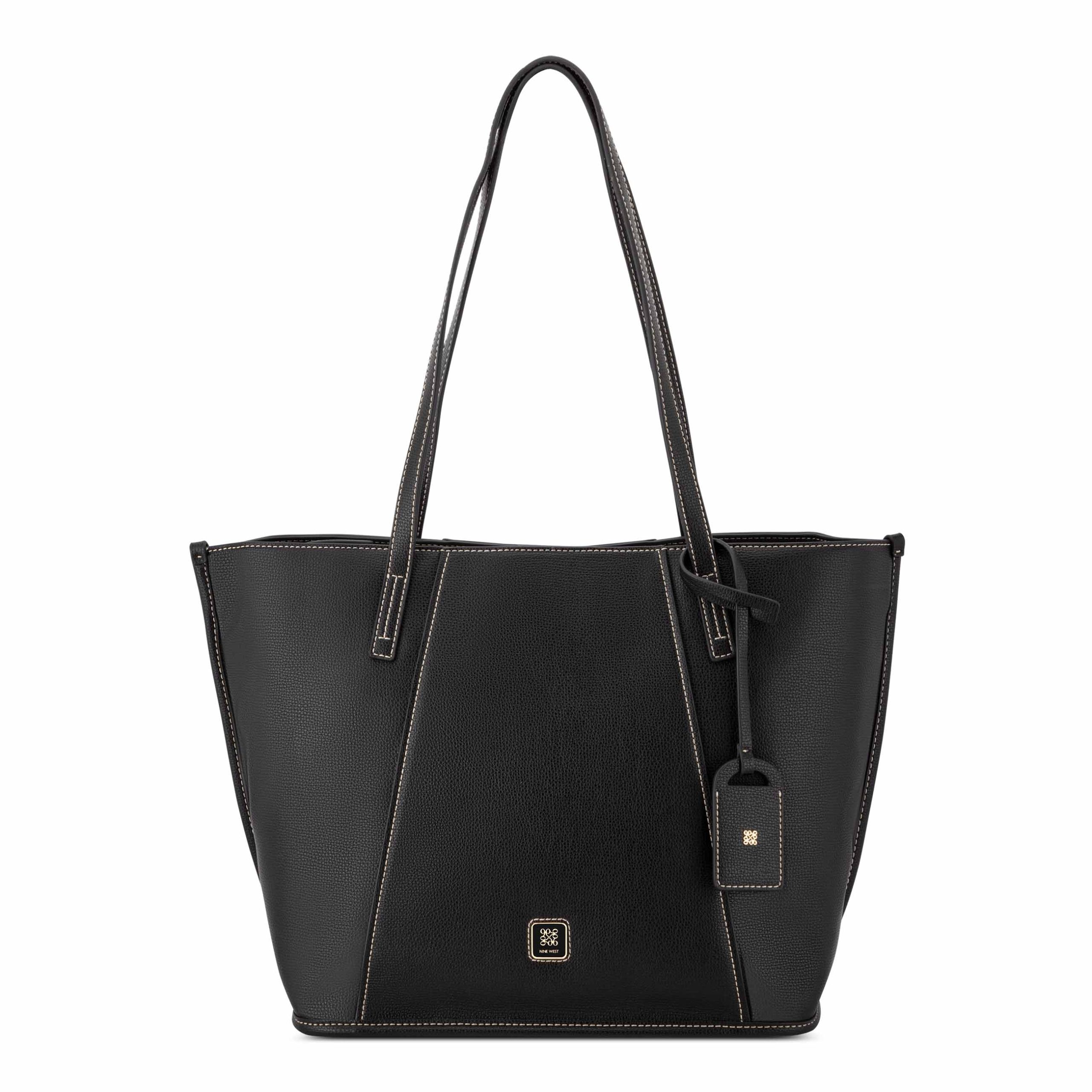 Nine West designer Quincie tote bag. Perfect for everyday carryall with design accents of gusset. contrast stitch and seam details. Internal organization an updated modern enamel hardware.