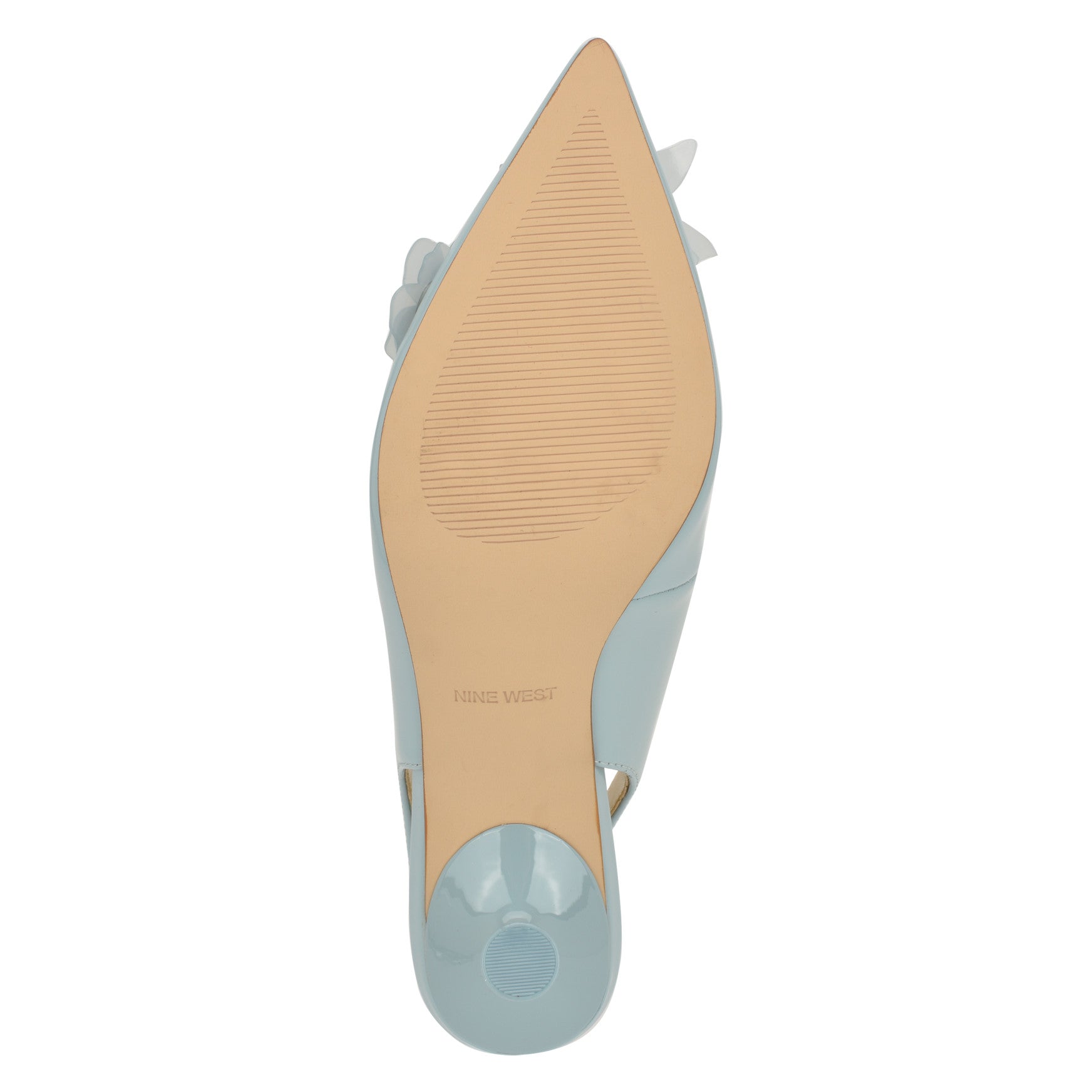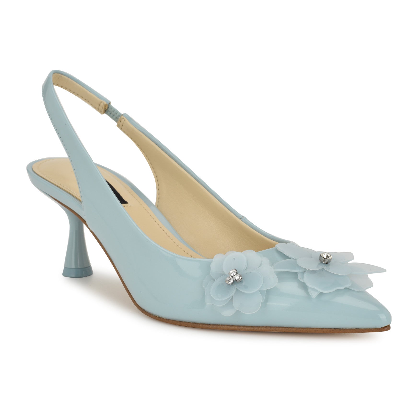 Three-dimensional floral appliqués with crystal centers clustered at a pointed toe. a sculpted kitten heel with a flared silhouette. and an elastic slingback strap that keeps things effortless. The Recca is the kind of pump that feels romantic and modern all at once. delivering walkable sophistication with serious visual payoff. Materials vary by color.