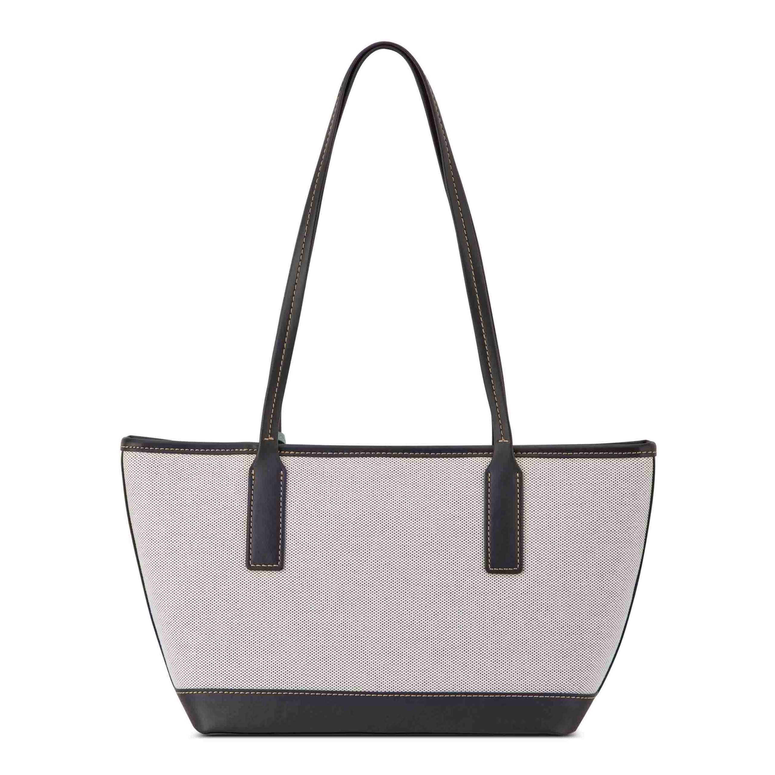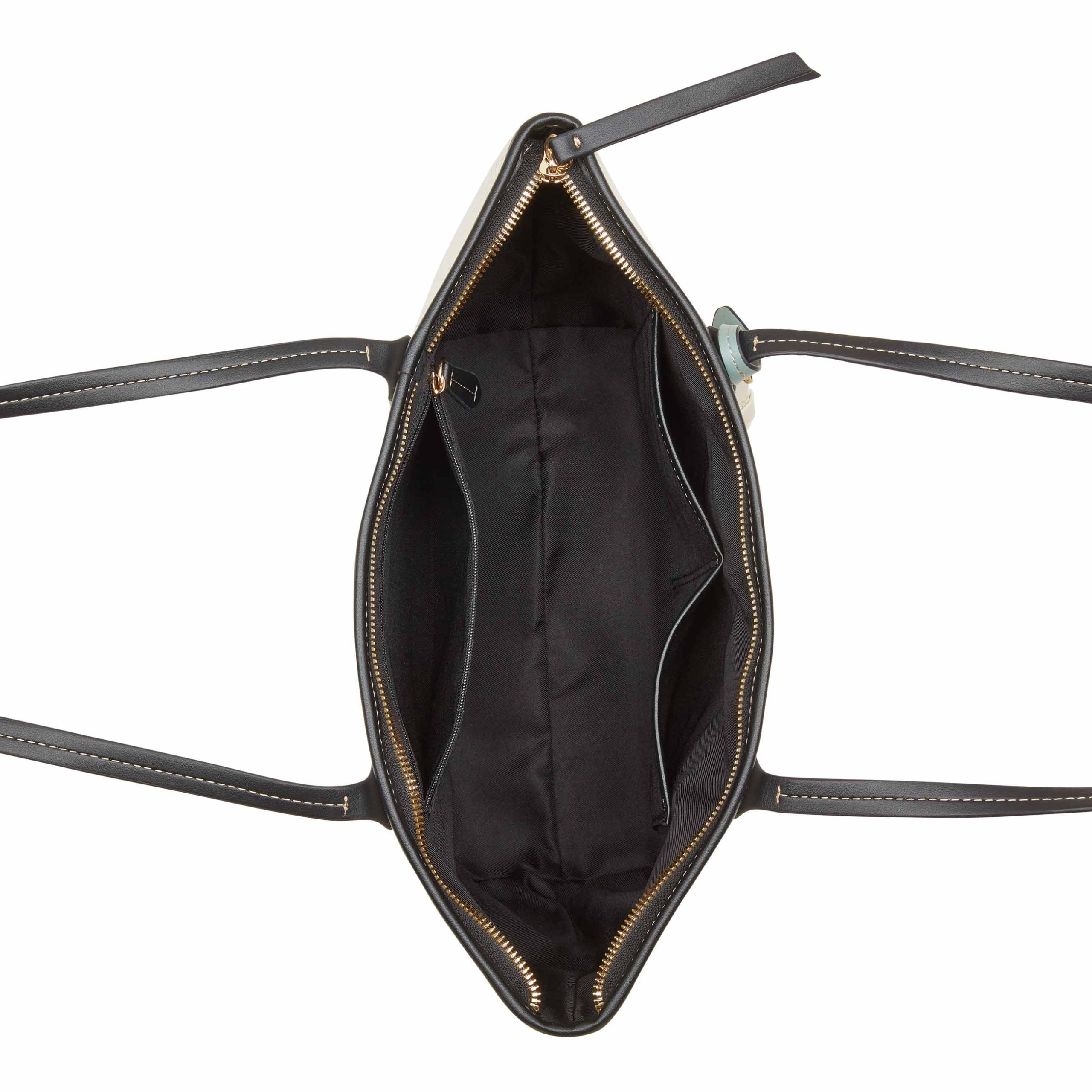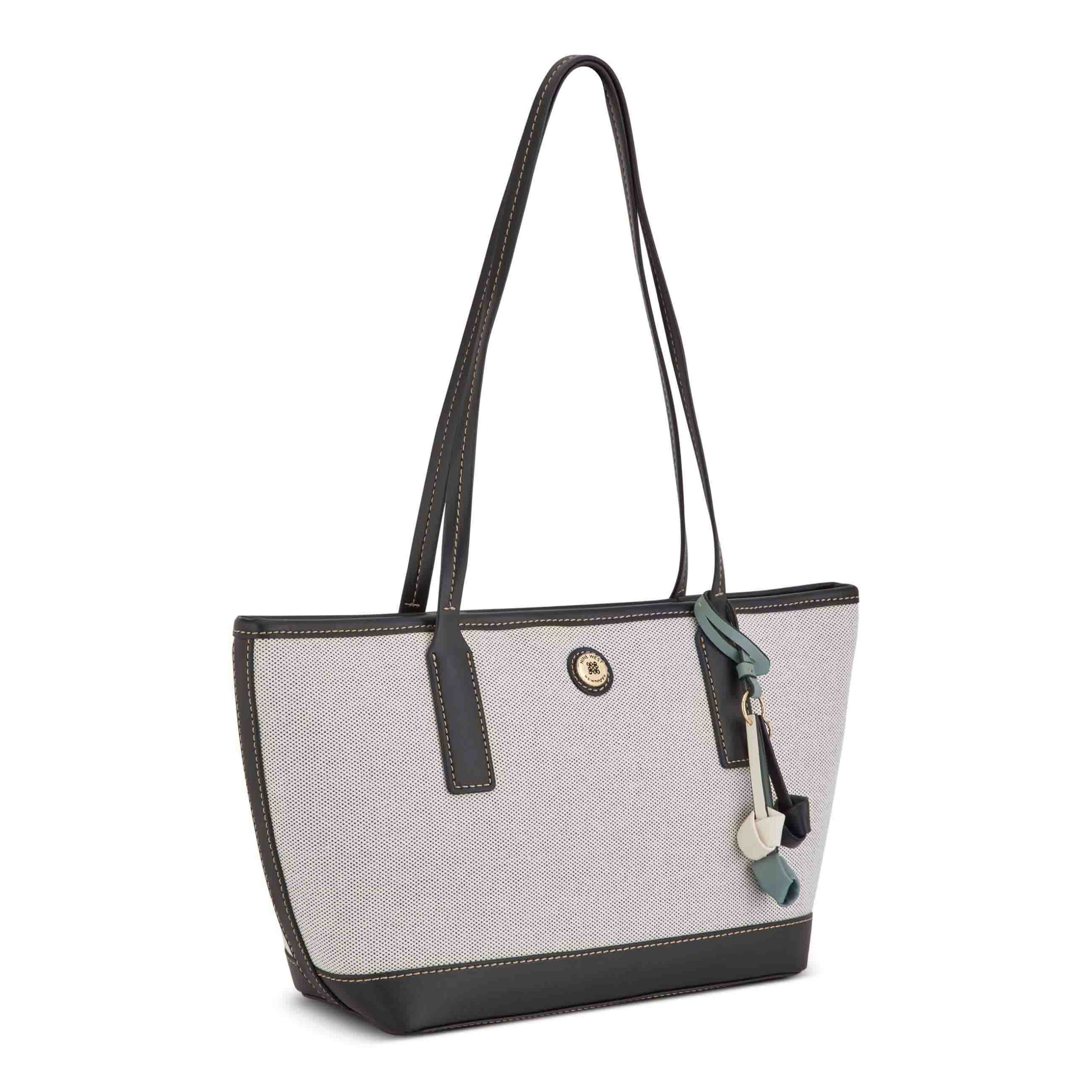 Nine West designer Talley shopper. Designed in beautiful canvas material which elevates your spring and summer look with floral pop adornment. Hardware and elevated branding with internal organization and full zipper closure